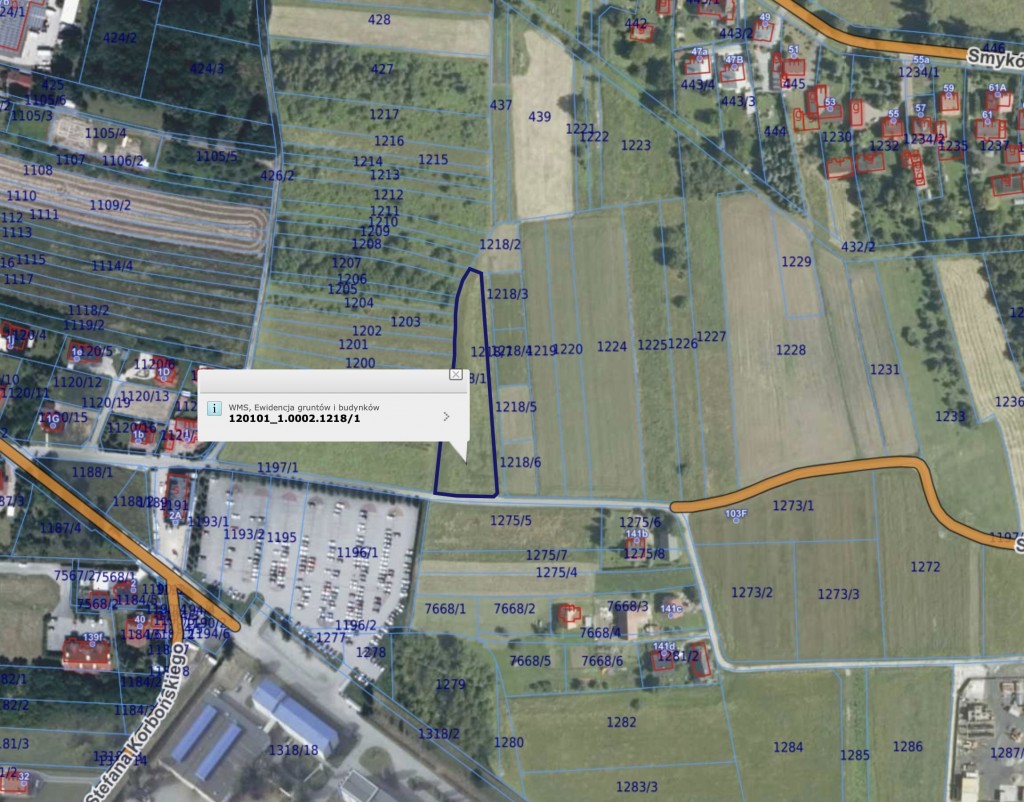 Na sprzedaż działka budowlana (nr 1218/1) o powierzchni 0,3221 ha, położona w Bochni przy ul. Hutniczej / Smyków oraz udział w drodze (nr 1218/7).