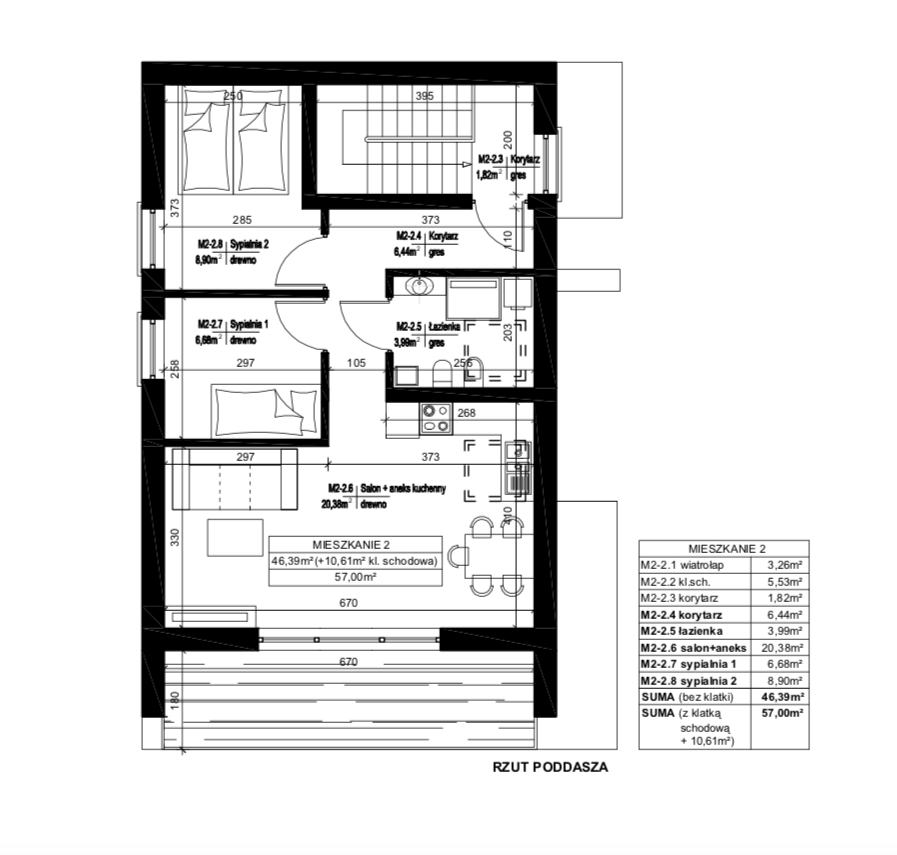 – 3-pokojowe mieszkanie o powierzchni 57 m2 w budynku mieszkalnym jednorodzinnym, dwulokalowym w zabudowie wolnostojącej, w Inwestycji Osiedle przy Proszowskiej w Bochni;
