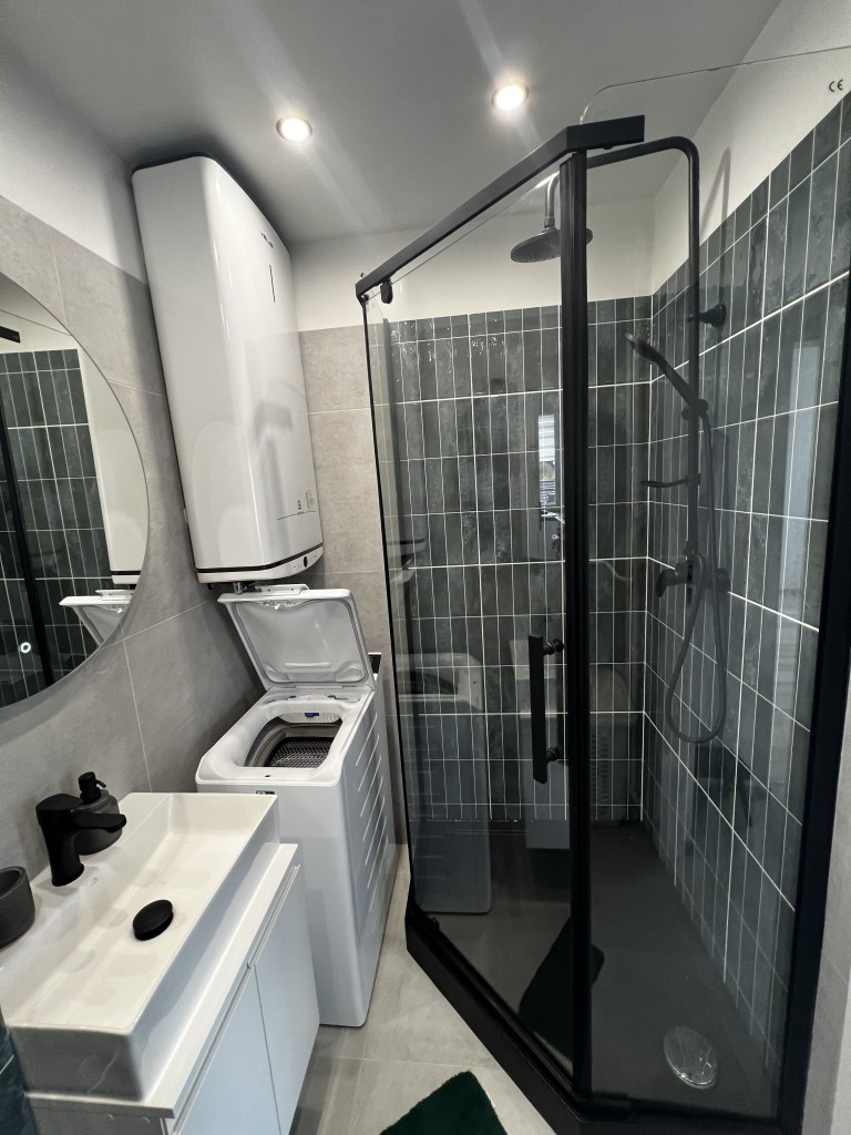 - Łazienka: prysznic, terma do ogrzewania wody