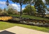 Dom otoczony jest w pełni zagospodarowanym ogrodem z roślinami ozdobnymi i krzewami owocowymi oraz podziemnym systemem umożliwiającym wygodne podlewanie całości.